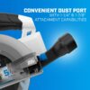 HART s 20V 6-1/2 Circular Saw operates on a powerful 4,700 RPM motor to make the most demanding cuts with ease. Make cuts fast and accurate with the included 24T carbide tipped, thin-kerf blade. The 0-50° bevel allows for greater cut capacity for more angled cut options and a 5/8 arbor allows for use with most common blades. To make clean-up easier, our saw features a vacuum attachment that fits 1-1/4 and 1-7/8 vacuum hoses.