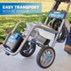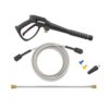 Looking for a new powerful pressure washer that can tackle even the toughest dirt and grime Then check out the HART 2500 PSI Electric Pressure Washer. This bad boy is ideal for heavy duty cleaning, thanks to its high performance Brushless Electric Induction Motor. Plus, the included Turbo Nozzle gives you up to 50% faster cleaning*. And with an on-board soap tank, applying detergent is a breeze. Other features include a metal spray wand with quick-connect nozzle coupler, durable hand truck frame and 10″ wheels for easy transport, and on-board accessory storage. Put HART s 2500 PSI 120V Electric Pressure Washer to work on driveways, decking, and more. Includes: (1) Pressure Washer, (1) trigger handle, (1) spray wand, (1) 25 hose, (1) turbo nozzle, (1) soap nozzle, (1) 15º nozzle, (1) quick start guide and operator s manual.