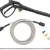 The HART 3000 PSI Electric Pressure Washer is an innovative solution for heavy-duty cleaning around the home. This high performance pressure washer features a brushless motor, delivering a powerful punch of 3000 PSI, making it perfect for tackling tough dirt and grime all around your property. With 3 quick connect nozzles (15°, 40°, Soap), you’re sure to have the right tool for every job. Additionally, it also comes with 25 foot high pressure hose to provide you with extended reach when cleaning areas that require more distance. The on-board accessory storage allows easy and convenient access to essentials, while the hand truck frame and large 12″ flat free wheels make transport a breeze throughout any surface. Plus, it comes with a 3 year limited warranty for added peace of mind!