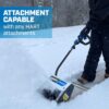 Reclaim your winter months with the HART 40V 12 Snow Shovel Kit, designed to free your paved sidewalk, driveway, and deck from snow’s grasp. This cordless powerhouse effortlessly carves a 12 wide, 6 deep path, sending snow flying up to 15 feet. Its variable speed trigger ensures enduring performance as you conquer mounds of snow. At the same time, the compact and lightweight design lets you work tirelessly without fatigue and stores conveniently once the job is done. This snow shovel is a breeze to handle, weighing only 18.4 lbs. Compatible with HART’s PowerFit attachments (sold separately) to save you time, money, and storage space. This kit comes equipped with a 40V 4.0Ah Lithium-Ion Battery and a 40V Charger, which are compatible with all HART 40V Tools. Embrace the ultimate winter solution in HART style!