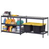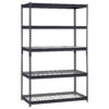 Create some extra storage space in your home by adding this Hart 5-Shelf Steel Shelving. This item features industrial-grade steel construction with a black finish to offer durability and style. This metal storage shelving unit measures 48″W x 24″ D x 72″H, and its Z-beam design provides strength and rigidity, allowing it to hold heavy loads. Five shelves with wire decking are supported by double-riveted beams and braces and can be adjusted in 1.5″ increments to accommodate items of various sizes. The 5-shelf storage rack features a rivet lock design to make assembly fast and easy without needing nuts or bolts. It can be assembled as one 72″ shelving unit, or made into two 36″ units. These shelves are ideal for organizing tools and materials for easy access or for storing shelf-stable food items, art supplies, toys, outdoor equipment, and more. Optimize utility and organization with this Hart 5-Shelf Steel Shelving.