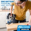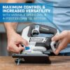 If you re a beginning woodworker or a DIY warrior, then this Brushless Orbital Jigsaw from HART is a must-have. This jigsaw is a powerhouse with a blistering 800-3,350 SPM and a stroke length of 1 . It ll definitely cut through anything you throw at it. And because it s Brushless, you can expect up to 58% longer runtime* and up to 36% faster cutting speeds when compared to HART s brushed counterpart. It features 4-position orbital settings for increased versatility. The orbital action tears through wood with a 0-45º bevel cut that bevels left and right. To change the bevel, just open the level and decide which angle you want to cut. No tools needed. The orbital can also be turned off to make straight cuts. A lock-on switch for uninterrupted cutting, onboard LED light to illuminate the workspace and a non-marring shoe to protect delicate work surfaces round out the major features. Includes: Orbital Jigsaw, T-shank wood cutting blade, non-marring shoe, and operator’s manual.