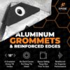 – GROMMETS FOR EASY TIE DOWN: About every 18 of the edges are reinforced grommets for you to tie down the tarp to secure it almost anything.