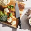– Set includes 3-in Paring Knife, 4-in Paring Knife, 5-in Serrated Utility, 7-in Hollow Edge Santoku Knife, 8-in Bread Knife, 8-in Chef s Knife, 6 – 4.5-in Steak Knives, Sharpening Steel, Kitchen Shears, 14-Slot Knife Block