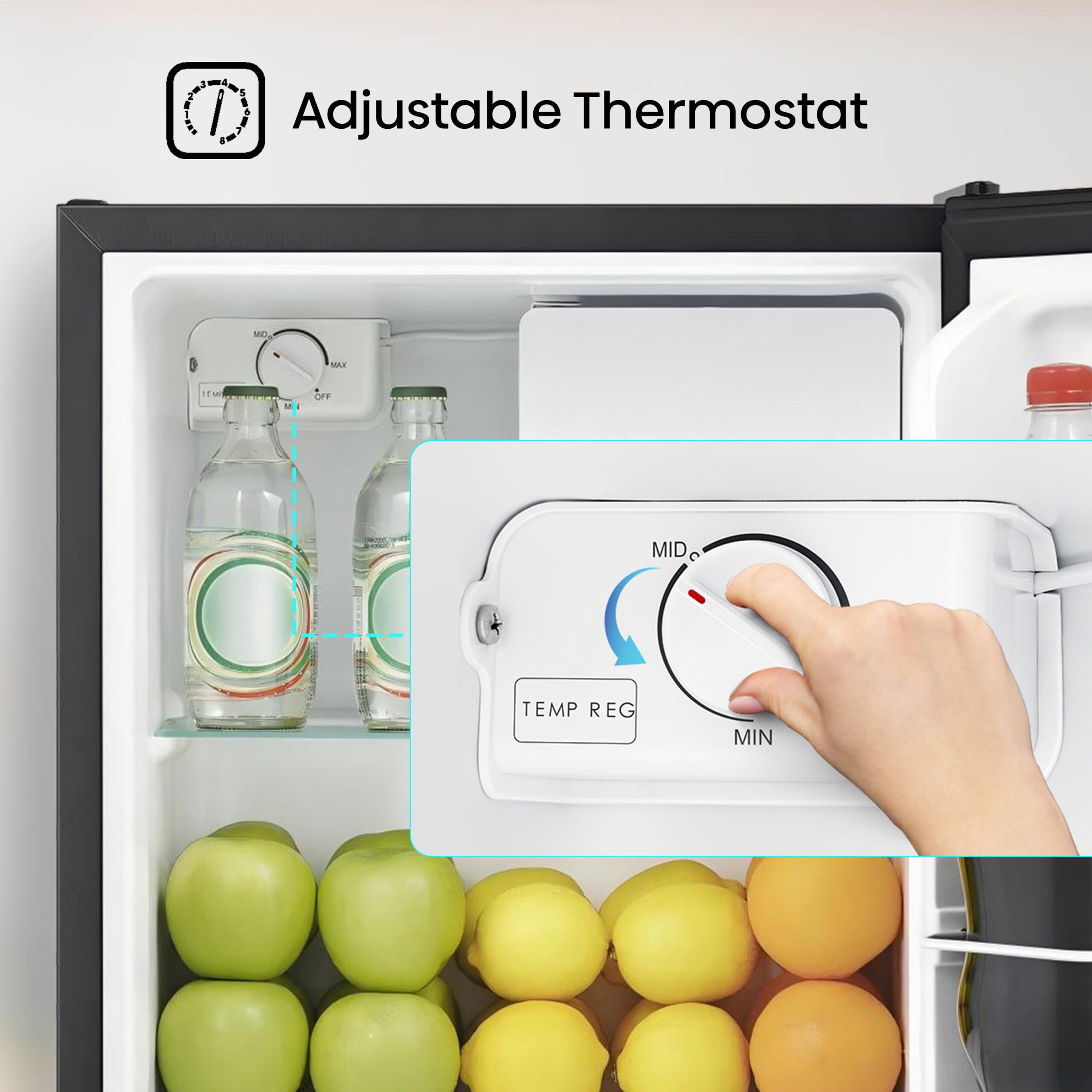 This Hisense 1.6 cubic ft. mini fridge is perfect for college dorms, break rooms, or just extra storage for your home and office space. The adjustable legs and reversible door design allow for placement of this mini refrigerator virtually anywhere you need. The sleek and fashionable fridge design does not compromise its functionality. Hisense refrigeration products are designed to serve as more than vessels to store food. They help to bring families together as they prepare meals to enjoy. 17.5″ In width, black color. This quality product includes a one year parts and labor warranty. Condition- New
