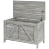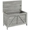 This storage box with lid stands out for a farmhouse design and can fit into various decorations. It features a large storage section to store books, blankets, and more. Its versatile design makes it a practical entryway shoe cabinet, a toolbox organizer, or a standalone storage cabinet. Make your house a home with HOMCOM storage boxes.