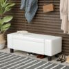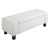 HOMCOM 42 Faux Leather Storage Ottoman Bench Organizer Chest Rectangular Footstool with Hinged Lid for Living Room Entryway or Bedroom Cream White
