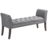Are you looking for an elegant and practical sitting bench HOMCOM has got you covered with this elegant tufted hallway bench. This padded bench can serve as a sitting bench, bed end bench, or entryway bench, which fits the living room, dining room, bedroom, or hallway. It’s covered in breathable linen touch fabric with a thick foam padding cushion for the sitting experience. Use this HOMCOM upholstered bench to enhance the décor of any room of your home.