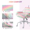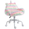 HOMCOM Fluffy Unicorn Office Chair with Mid Back and Armrest Support 5 Star Swivel Wheel White Base Rainbow