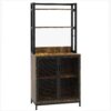 – Elevate your space with our sleek industrial microwave rack. Crafted from rustic, warm-brown melamine boards and a black powder-coated steel frame, our baker’s rack combines stability and chic design.