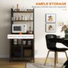 Discover your kitchen’s untapped potential with our kitchen storage rack. Stylish and versatile, it can transform any space into an organized culinary paradise. The open-back design ensures your favorite appliances are always ready for action. Master the art of hosting with the coffee bar setup. Boasting extra storage space, our industrial microwave stand helps declutter countertops, giving you room to unleash your inner chef. Make your house a home with HOMCOM.