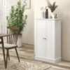 – If you spend a lot of time in the kitchen, you want a beautiful piece that you enjoy looking at and that matches the theme in your home. This kitchen storage cabinet features a painted finish.