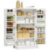 – Featuring 5-tier interior shelving and 12-tier side racks behind the doors, this pantry cabinet gives you plenty of room for dishes, cookbooks, pots and pans, spice jars.