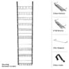 – PRODUCT DETAILS – Materials: Metal. Dimensions: (L) 17.7 x (W) 5.1 x (H) 74 . Comes with 6 Door Hooks, 5 Short Baskets, 4 Tall Baskets, 3 Bar Stoppers, and Mounting Hardware. Color: Platinum.,PRODUCT DETAILS – Materials: Metal. Dimensions: (L) 17.7 x (W) 5.1 x (H) 74 . Comes with 6 Door Hooks, 5 Short Baskets, 4 Tall Baskets, 3 Bar Stoppers, and Mounting Hardware. Color: Black.