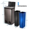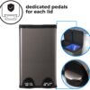 – Dual Lids and Step Pedals Each dedicated to the type of waste you are throwing away, making disposal more efficient than ever