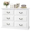 Homfa 6 Drawer Horizontal Wood Dressers Chest for Bedroom, Contemporary Storage Cabinet for Living Room Entryway, White