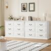 This Homfa vintage white 6 drawer double dresser for bedroom will keep your room neatly arranged and organized. Featuring 6 white deep large capacity dresser drawers, this white dresser chest has enough storage space to store a large number of household items whilst still allowing for perfect classification of item types.