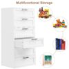 The vertical lingerie chest features a simple-looking but unique drawer panel design to make it exquisite and elegant, perfectly placed in the bedroom, living room, study room etc.Crafted of durable wood material and drawers with metal slides, this white dresser is built to last. Upgraded ladder structure adds more stability to use.