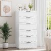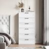 Homfa 6 Drawer Tall Dresser, Chest of Drawer Nightstand with Metal Handles for Bedroom, White
