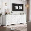 This Homfa double dresser offers essential storage space in your main bedroom or checkroom. It features 6 drawers that can be opened by pull ring handles with a vintage bronzed-finished, revealing plenty of room for your clothes, extra bedding, and books.