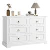 Homfa 6 Drawers Double Dresser, 47” Wide Storage Cabinet Chest of Drawer for Bedroom Living Room, White