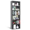 – [Easy to assemble]: Gray bookshelf comes with labeled parts and illustrated instructions, easy to assemble, equipped with caps to hide the screws.