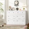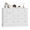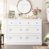 Homfa 8 Drawer Horizontal Combo Dresser for Bedroom, Modern White Chest of Drawers Wood Storage Cabinet for Living Room