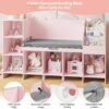 Homfa Kids Bookshelf with Reading and Seat Nook, 7 Cube Wooden Child Toy Organizer with Adjustable Shelf, 31.5” H x 54.5” W, Pink