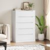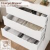 Homfa Vertical 5 Drawer Dresser, Wood Storage Cabinet with Upgraded Stable Base for Bedroom Living Room, White