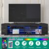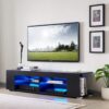 – Modern and Stylish Design: Add a touch of modern elegance to your living space with our LED TV stand. Its high gloss finish on front and black color create a fashionable and contemporary look that complements any decor.