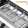 – 4 heat-control knobs and lid-mounted thermometer allows for precise temperature control