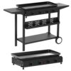 Show off your cooking skills with the HONGGE Griddle Cooking Station. This large griddle with four independently controlled cooking zones is just what you need for your backyard parties, barbecues, and campouts. On top of that, this griddle provides you with four independent cooking zones so you can cook everything at the same time at different temperatures. 4 control knobs allow you to adjust the temperature of different heating zones (preservation, low, medium, high). 2 side table and bottom shelf offer sufficient storage space for you. It s ideal for cooking eggs, pancakes, bacon, steak, potatoes and other grilled food. You can use it in patio, garden, backyard, etc.