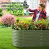 HOOFUN 8ft X 2ft Raised Garden Bed, 17 Tall 9 in 1 Metal Garden Raised Kits, Oval Planter Box Outdoor for Vegetables Flowers- Olive Green