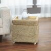 Give your living space an instant update with this Household Essentials Rolling Seagrass Wicker Storage Ottoman with Lid.