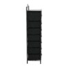 This storage tower is a practical organization solution for any space. The tower comes with 2 medium drawers (7.375″ H x 7.875″ W x 12.25″ D) and 6 large drawers (5.5″ H x 15.75″ W x 12.25″ D) that can be rearranged in the tower to create a variety of looks. Aside from the top two drawers, the lower drawers can be placed in any order. The tower s frame is made of sturdy black metal with decorative flourishes for a sophisticated touch. On top of the drawers is a wood laminate shelf in a black oak finish for additional storage space. The drawers come in rich black colors to match the dark wood laminate. Each drawer has a durable black plastic handle that coordinates with the black metal frame. Comes ready to assemble and is easy to put together. Includes anti-tipping hardware.
