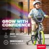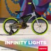 Your rider will light up when they see this awesome 18-inch bike from Huffy. The all-new 18-inch Electro-Light kid’s bike is every rider’s dream come true! With infinity LED light displays on the handlebar, frame, and chainguard, every ride turns into a phenomenal light show. With the press of a single button on the back of the handlebar feature, the LED lights begin to shine in sync, illuminating the entire bike! Not only is this bike eye catching, but it has all of the right features to help your child feel confident as they ride. The training wheels on the bike are removable when your child is ready to ride on two wheels, and the easy-to-engage coaster brake delivers efficient stopping with a simple backwards pedal motion. Parents will appreciate Huffy’s EZ Build technology, making assembly a breeze! Light up the way and enjoy the ride!