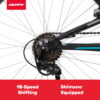 Features include 18-speed index shifters with a Shimano rear derailleur for seamless cycling, reliable alloy linear pull brakes, and lightweight, weather-resistant rims. Comfort comes with premium Huffy-branded Krayton grips and a comfortable saddle. The quick-release binder clip allows for easy adjustments. Ready for adventure, the Huffy Trail Runner is built for fun!