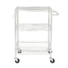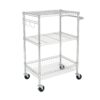 Hyper Tough 3 Tier New Multi-Purpose Rolling Cart in Chrome color is an easy assembly item with no tools required. It offers you versatile storage solutions for your kitchen, laundry room, garage, office etc. Its wire shelves and basket are adjustable in 1 inch increments. Four durable casters allow you to wheel the cart from one room to another with ease. . The total load capacity on casters is up to 495 lbs per unit when evenly distributed. NSF certified for dry storage. Perfect storage unit with flexible mobility.