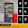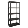 Maximize your storage space with this Shelf Plastic Garage Shelves versatile 5-tier shelving unit, proudly manufactured in North America. Adding shelving is one of the simplest ways to organize even the most limited spaces, protect your items from damp floors, and more. This lightweight unit snaps together with no tools required so you can get started on your home organization project right away. Heavy-duty molded plastic resin shelves hold 150 lbs (68 kg) each and will not rust, dent, stain, or peel. Ventilation holes allow air to flow and control moisture, keeping your items clean and dry. Nested legs and anchor holes offer added support, and the interlocking design lets you easily and securely link together multiple units. Whether you are decluttering your basement, organizing your craft room, or spring cleaning your garage, Hyper Tough has the perfect shelving solution for you.