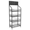 The five hooks and four-layer storage shelf design can make full use of vertical space without occupying excessive floor space, saving store or warehouse space, improving space utilization efficiency, helping to improve the visibility and accessibility of commodities, thus potentially increasing sales and customer engagement.