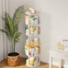 IAJXWI 360° rotating bookshelf tower is made of a new type of environmentally friendly wood plastic board, which is not easy to mold, swell and deform after absorbing water under damp conditions. Our children bookcase is in a stable structure and tool free installation, which is space-saving that can hold many items like books, toys etc. The simple appearance can be matched at will according to different styles. Our 5 tier 360° rotating bookshelf is very suitable for your family and kids as best gifts, such as birthday gifts, holiday gifts or christmas gifts!