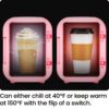 – KEEP IT COOL: With a chilling temperature of 40°F, this mini refrigerator ensures that your drinks, lunch, or cosmetics all stay perfectly cool. SPACIOUS YET COMPACT: Offers a spacious 4-liter interior to store six 12-oz cans, baby bottles, or skincare products with customizable space thanks to a removable shelf. The perfect size beverage fridge for your office, dorm, or car. CONVENIENT WARMING: Switch to warming mode to keep your meals or beverages at a cozy 150°F. Perfect for keeping your lunch warm throughout the day or soothing towels for a spa experience at home.