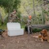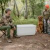 From the industry leader in extended cooling performance, comes this Igloo Polar Cooler in white. Its Ultratherm insulation in the body and lid provides maximum cooling, so your drinks will stay at the right temperature while it holds ice for up to five days. This Igloo 120-Quart cooler is ideal for camping, extended trips, going to the beach, all day fun at the ballpark or backyard parties. It features dual, snap-fit latches that are child-safe to secure the lid tightly and a tie-down loop offers additional security. There’s a liner that protects the interior of this Igloo Polar Cooler from odors and staining. A threaded drain plug makes it easy to fill it up with water by simply attaching a garden hose. The lid guard even has UV inhibitors to protect from damage caused by the sun. All together, it can hold up to 188 -2 oz cans. This camping gear from Igloo is just what you need to stay hydrated and refreshed while having a wonderful time outdoors.