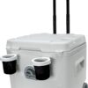 Fine-tuned for your next fishing trip, the Igloo 52-Quart Marine 5-Day wheeled cooler with cup holders combines grippy, non-marking wheels with a full suite of marine-grade features. From UV protection to rust-proof stainless-steel hardware, this cooler will keep drinks and snacks (or the catch of the day) cold, fresh and there when you need it. Designed to stay where you are no matter the rough or wet surface. White indoor and outdoor 52-Quart wheeled cooler.