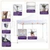 This complete 10×10 canopy tent package sets up in minutes without tools and includes a steel frame, canopy top, four walls (one with roll-up door and roll-up screen window), four weight bags, rope/spike kit, and roller bag. Use one, two, three, or four sidewalls in any combination to get the protection you need. Please Note: This canopy is not to be left unattended, as it is a temporary shelter. If there is inclement weather, take the canopy down immediately. Any rain and wind more than 10 to 15 mph will damage the canopy. Water that collects on top will destroy the structure of the canopy. Impact Canopies will not be held responsible for any weather damage. The frame is backed by a two-year warranty, the top and walls are backed by a one-year warranty, and the roller bag is backed by a six-month warranty. Replacement parts are always available.