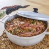 The IMUSA caldero is the workhorse of any Hispanic kitchen due to its versatility and unique design. The caldero (or cauldron in English) has rounded sides, a tight-fitting lid, and superior heat distribution. The caldero is used to cook rice, beans, braise meat, and simmer stews and soups. Made in Colombia these traditional calderos will be part of your kitchen for many years to come. The rounded side heats up evenly and quickly allowing you to cook a variety of different foods. The matching lid is ideal to lock in flavor while cooking and the caldero can be used as a serving dish after cooking. This caldero (or cauldron) is an excellent addition to any kitchen and is ideal for simmering, braising, boiling, and all sorts of cooking, and features a tight-fitting lid that seals in aromas, flavors, and moisture. This caldero has a natural finish that becomes seasoned after use, imparting more flavor than nonstick pots. Lightweight aluminum construction ensures quick and even heating, plus the open pot is oven-safe for broiling and finishing dishes.