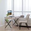 – Made of durable laminate particleboard finish and powder-coated metal hardware, easy to clean.Our x frame desk adds a touch of elegance to your room.