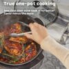 – Deep skillet with more cooking area than a 12″ skillet; can easily fit 5 pounds of chicken or 3 racks of ribs