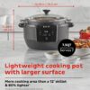 – Aluminum inner pot is over 80% lighter than ceramic inner pot for easier carrying from cooker to oven (up to 350°) to table