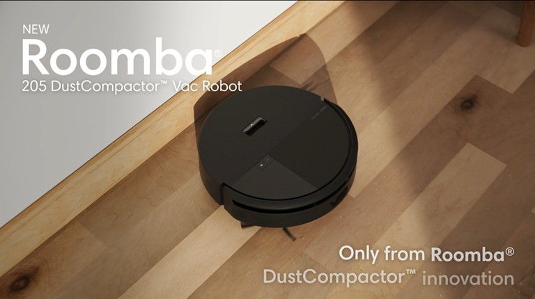 Only from Roomba®, the 205 DustCompactor™ Vac Robot is fully-loaded with innovation that keeps cleaning simple. Perfect for homes where space is at a premium, this sleek, action-packed robot has all the benefits of a separate self-emptying dock built right into the robot. With the industry’s first-ever mechanical compactor, debris is lifted into the robot and continuously compacted for up to 2 months at a time. The bagless DustCompactor™ stores debris within the robot. No bags to replace, no mess to manage. The 3-stage Vacuuming System combines 70X more* power-lifting suction, a rubber brush that grabs all kinds of debris from crumbs in the kitchen to sandy footprints in the entry, and a corner brush that reaches into tight spaces to pull up dust-bunnies. ClearView™ LiDAR hidden inside the robot. This high-performance navigation system quickly maps your home, smoothly steers around obstacles, and maximize floor-cleaning coverage. Simply tap the Roomba® Home App to opt for multiple vacuum passes in high-traffic areas, choose the level of suction, or even schedule a night cleaning. With its first-of-a-kind mechanical compacting system, there’s no need for a separate self-emptying dock to clutter up your beautiful floors. *As compared to Roomba® 600 series robots